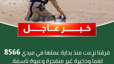 “مسام” يعلن انتزاع 8566 لغم وعبوة متفجرة في ميدي