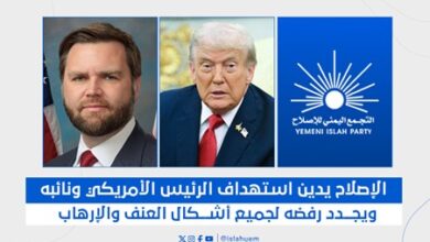 الإصلاح يدين استهداف الرئيس الأمريكي ونائبه ويجدد رفضه لجميع أشكال العنف والإرهاب