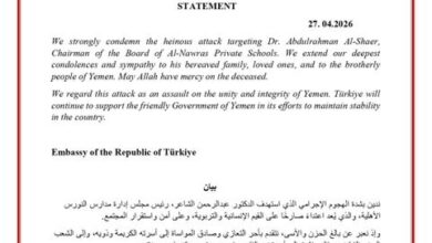 حجة برس – متابعات: أدانت الجمهورية التركية جريمة اغتيال رئيس مجلس إدارة مدارس النورس التربوي عبدالرحمن الشاعر، واصفة الحادثة بأنها…