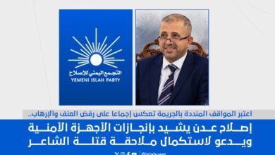 حجة برس – الإصلاح نت: أشاد التجمع اليمني للإصلاح في العاصمة المؤقتة عدن، بالجهود التي بذلتها الأجهزة الأمنية في…