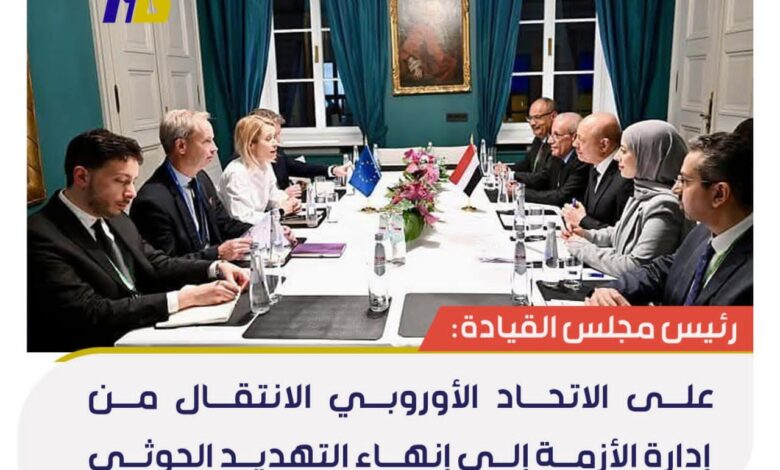 رئيس مجلس القيادة: على الاتحاد الأوروبي الانتقال من إدارة الأزمة إلى إنهاء التهديد الحوثي