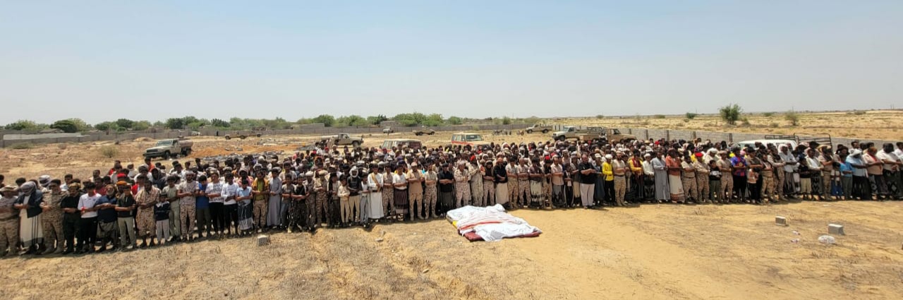 في موكب جنائزي مهيب… تشييع رسمي وشعبي لجثامين ضحايا القصف الحوثي على المدنيين في حيران