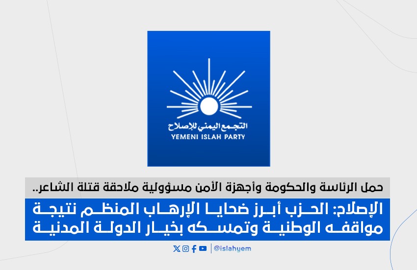 إن هذه العملية الإرهابية ليست حادثة معزولة، بل تأتي في سياق ممنهج من الاغتيالات السياسية التي استهدفت قيادات ورموز العمل الوطني، وكان للتجمع اليمني للإصلاح النصيب الأوفر منها، ما يؤكد أن الحزب ظل -ولا يزال- أحد أبرز ضحايا الإرهاب المنظم في اليمن، نتيجة مواقفه الوطنية الرافضة للعنف، وتمسكه بخيار الدولة المدنية وسيادة القانون.