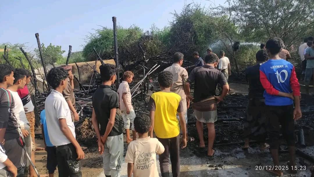 واكد ناشطون بالمديرية بأن الحريق أدى إلى تدمير المنزلين”من القش والخشب” بالكامل ولم تسجل أي إصابات بشرية، ولم تتضح حتى اللحظة أسباب الحريق.