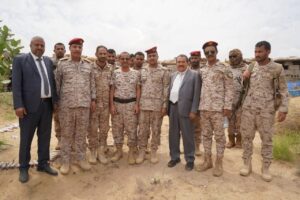 وخلال الزيارة لقطاعات المنطقة العسكرية الخامسة، نقل المحافظ للمقاتلين الأبطال تحايا القيادة السياسية..مشيداً بثباتهم وصمودهم، واصفاً إياهم بأنهم اختاروا أن يكون عيدهم في المتارس دفاعاً عن الوطن..مؤكداً أن هذه التضحيات تمثل حجر الأساس لمعركة استعادة الدولة.