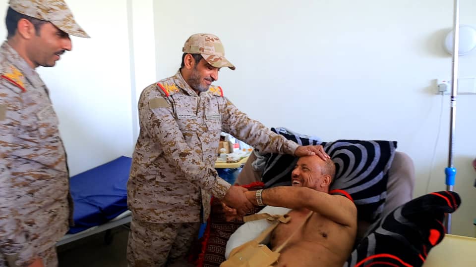 تفقّد رئيس هيئة الأركان العامة، قائد العمليات المشتركة الفريق ركن دكتور صغير بن عزيز، أحوال الجرحى من أبطال المنطقة العسكرية الأولى الذين يتلقون الغلاج في مستشفيات مأرب بعد إصابتهم خلال اعتداءات مجاميع مسلحة تابعة للمجلس الانتقالي الجنوبي، على القوات المسلحة بمحافظة حضرموت.